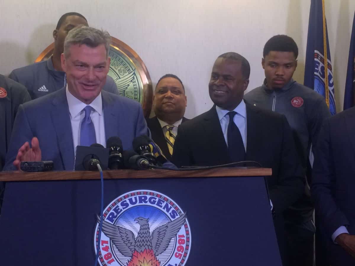 As Blank left the meeting, he said his team talked about the stadium (including the fan-friendly pricing for food and drink) as well as the investment in revitalizing the Westside communities near the new Mercedes-Benz Stadium.